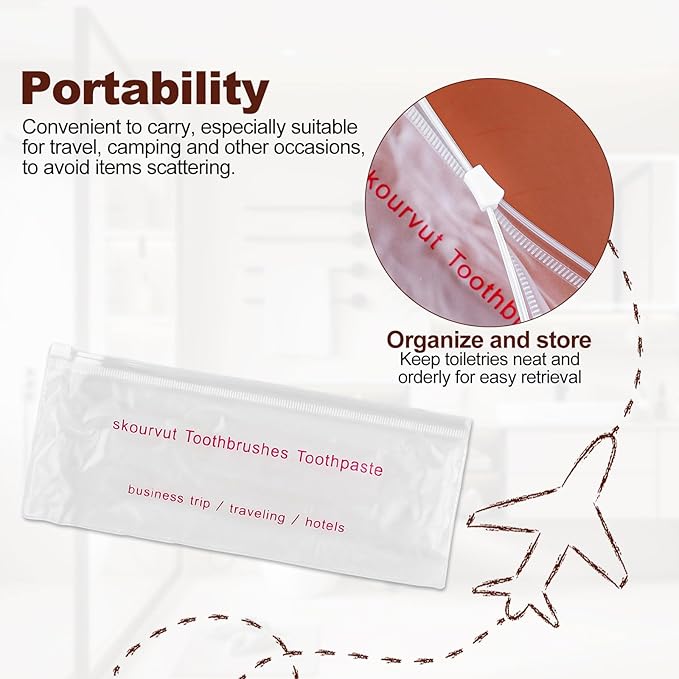 Disposable Toothbrushes with 45 Grams Toothpaste Individually Wrapped, Travel Kit Whit Plastic Zip Bag,Toothbrush Head Cover, Bulk Toothbrush for Homeless,Travel,Shelter,Air Bnb,Hotel,Guest (4)