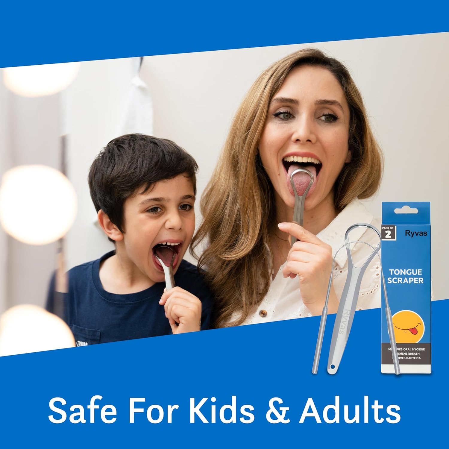 Ryvas Tongue Scraper for Adults (2-Pack) with Travel Case – Dual-Edge Oral Care Tool, Stainless Steel Design for Fresh Breath & Daily Hygiene