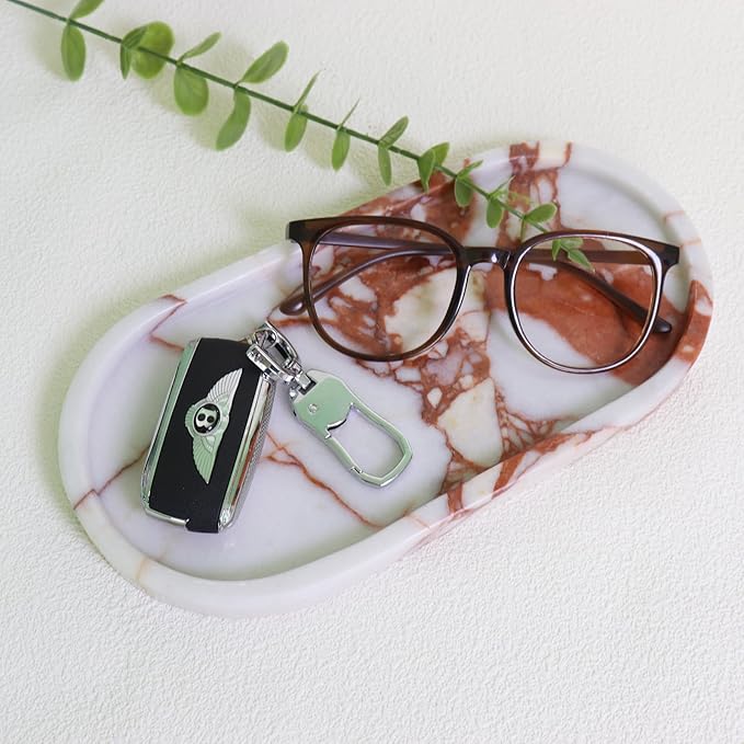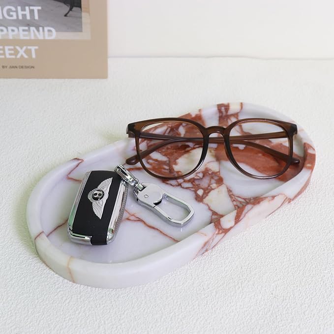 Natural Marble Tray, Oval Vanity Decorative Tray for Bathroom Counter, Countertop Stone Organizer, Catchall Tray for Kitchen, Perfume, Candles, Jewelry Dish Decorative Tray