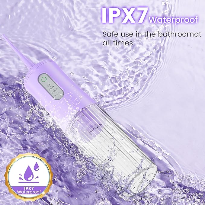 Cordless Water Flosser for Teeth Cleaning Pick - Electric Dental Irrigator with 4 Cleaning Modes & 8 Jet Tips, IPX7 Waterproof, Portable Rechargeable Design for Home & Travel Use,Purple