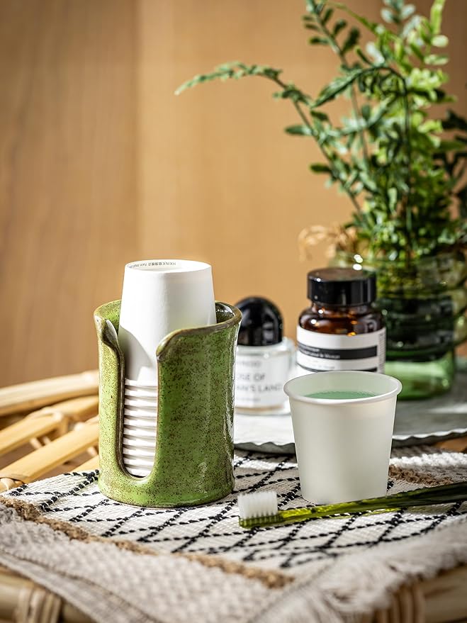 Ceramic Bathroom Cup Dispenser, 3 Oz Bathroom Cup Holder for Dixie Cups, Mouthwash Cup Dispenser for Bathroom Countertop, Green