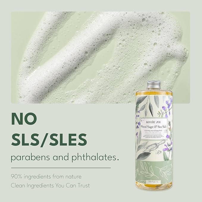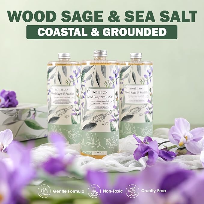 - 【Coastal & Refreshing】A clean, coastal fragrance blending earthy wood sage with crisp sea salt for a refreshing wash. This foaming hand soap refill is plant-based, gentle, and perfect for everyday use in the kitchen or bathroom.