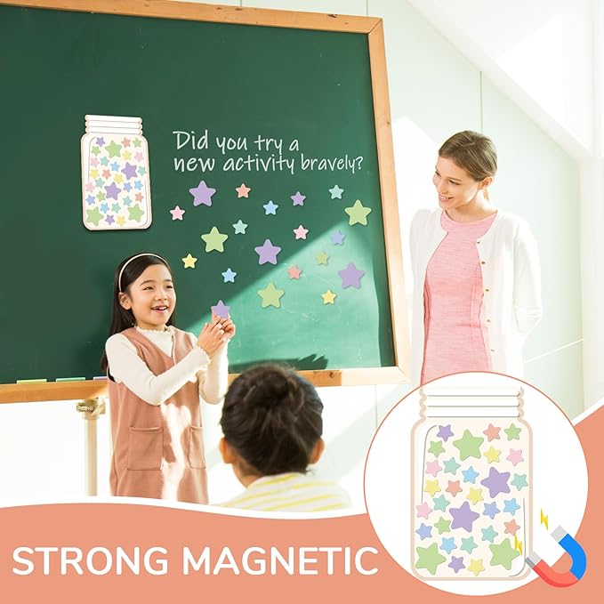 - What You Get: This set includes 1 magnetic reward jar, 66 pastel stars stickers, and 1 storage bag to keep the accessories organized. The complete classroom reward system offers everything you need to support classroom or at-home behavior tracking. Use it to encourage progress and keep kids motivated through visual rewards.
