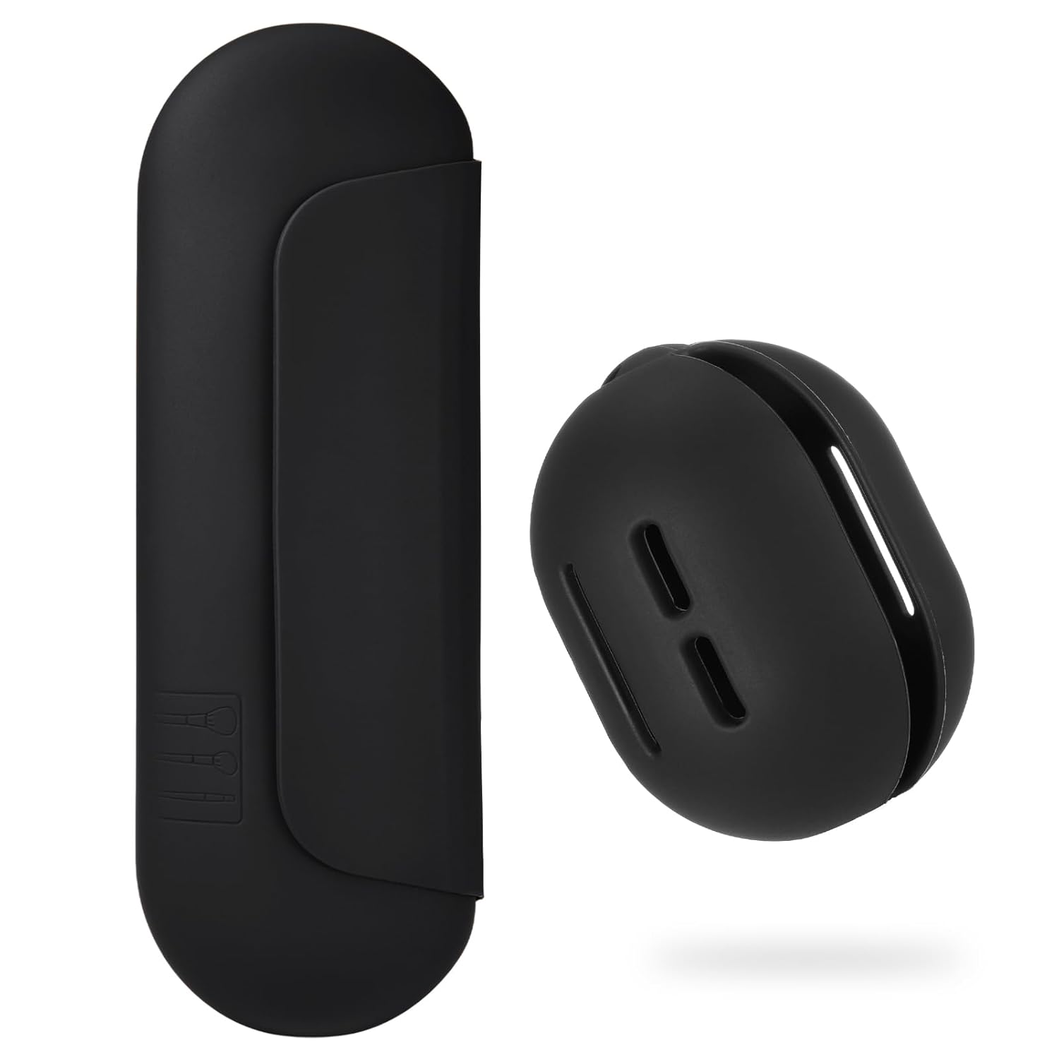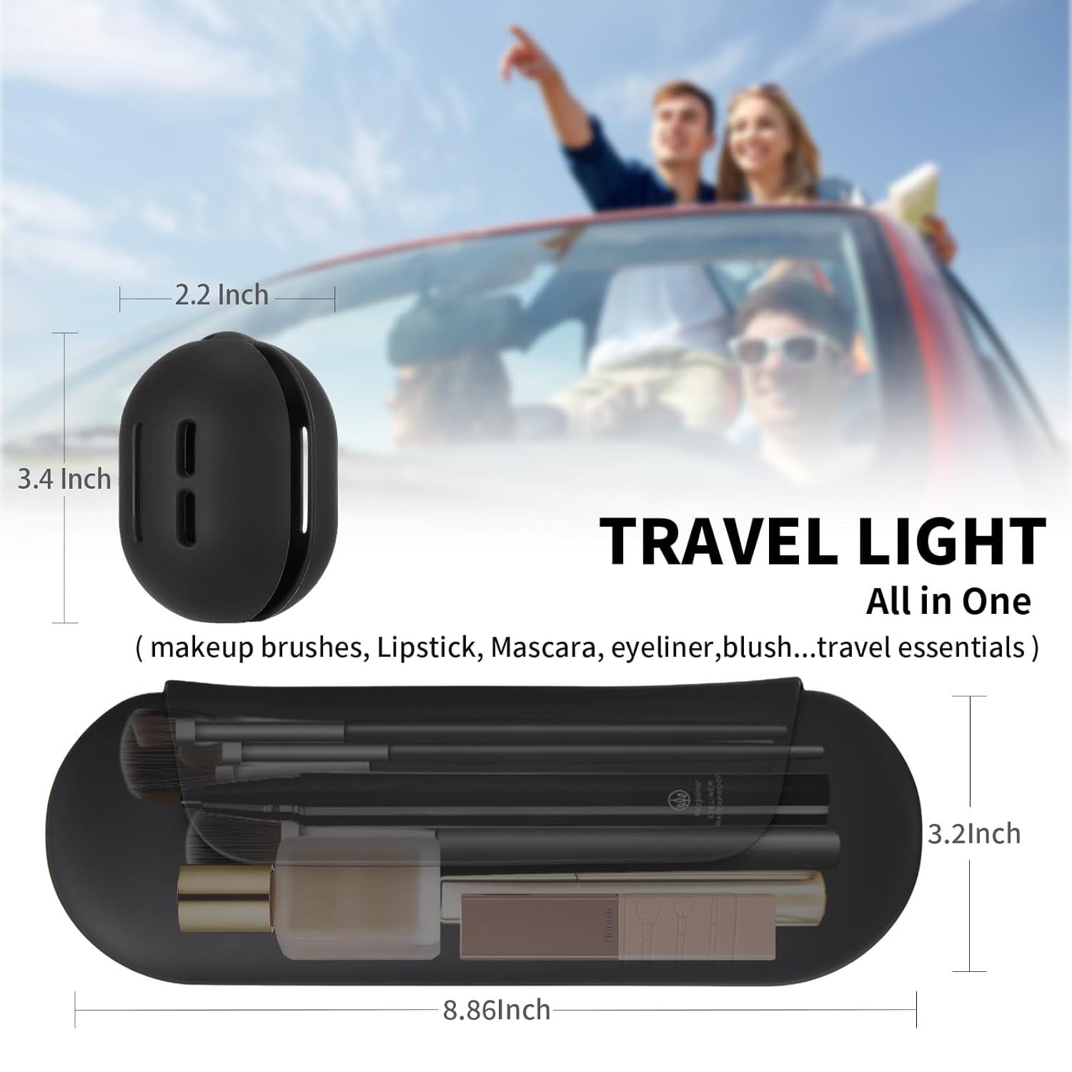 2 IN 1 Silicone Makeup Brush Holder with Beauty Make Up Sponge Holder Case:Soft Portable Cosmetic Face Brushes Holder with Upgrade Anti-Fall Out Magnetic Closure - Black
