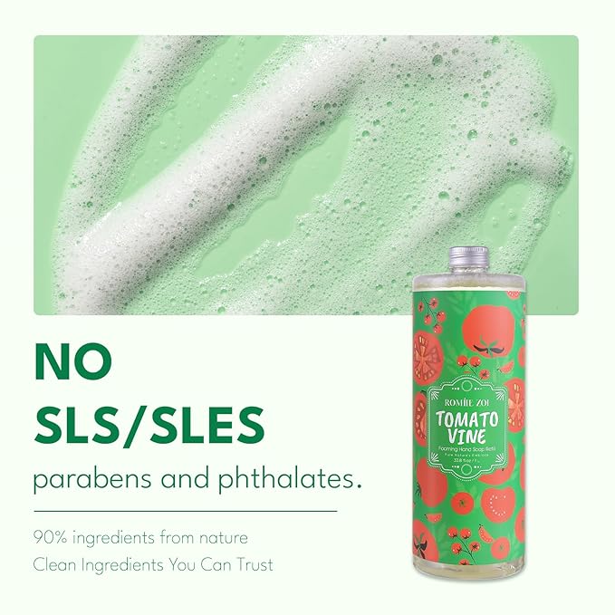 ROMIIE ZOI Foaming Hand Soap Refill Gift Set – Tomato Vine Scent – 3 Pack (33.8 Fl Oz Each) with Refillable Dispenser, Chemical-Free & Moisturizing Formula – Bulk Refills Setfor Bathroom & Kitchen