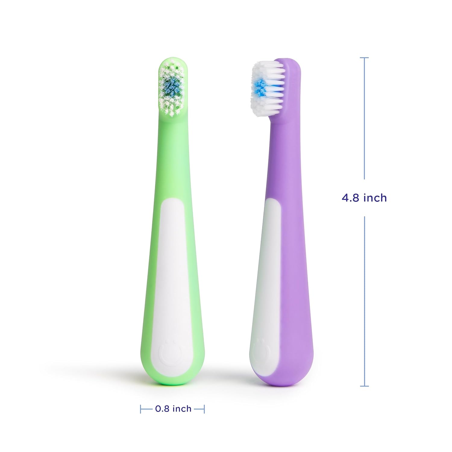 Ubbi Toddler Training Toothbrush Set, Soft Bristled & Gentle Manual Toothbrushes for Baby, Green Zest & Smoothie Purple