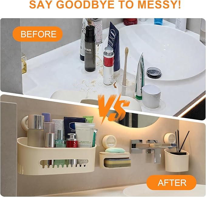 - 【3-IN-1 BATHROOM ORGANIZER】 Includes 1 shower shelf, 1 draining soap dish with collector, and 1 compact storage cup. Ideal for shampoo, soap, razor, and toothbrush.