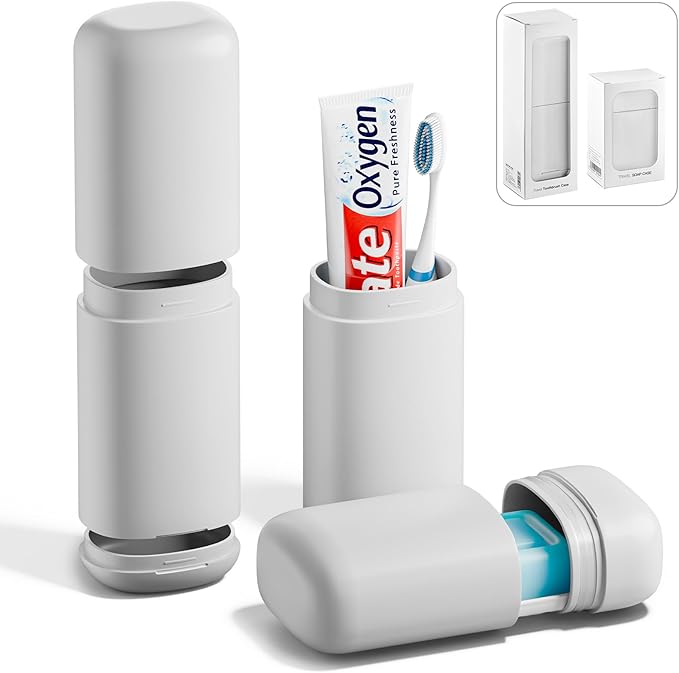 - Detachable Design: Both the travel soap case and the toothbrush case feature a fully detachable design for effortless cleaning. The toothbrush holder's cover even doubles as a rinsing cup, reducing the number of items you need to carry while traveling