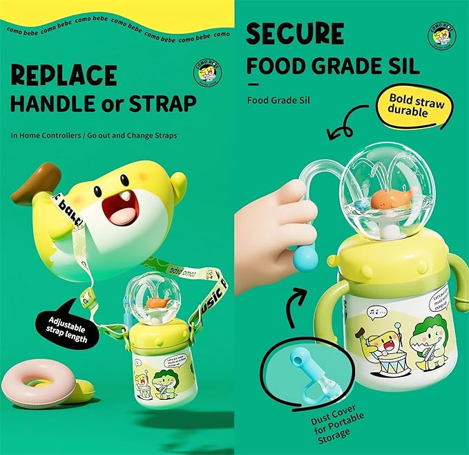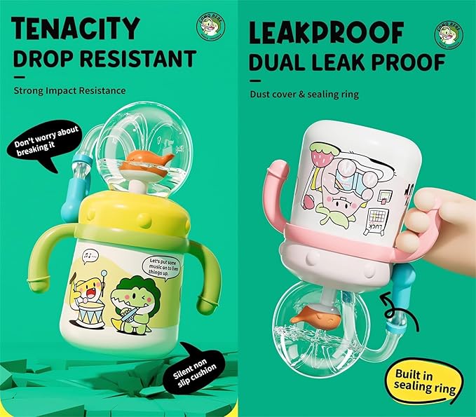 - π³π₯€γ Weighted Straw Bottle to Sippy Cup Transition γ Kids cups with weighted sippy straw cup design makes the water where the end of the straw will go, allowing to drink water in any comfortable position. V-type learning design trains oral movements while effectively preventing coughing. The straw cups designed with easy-grip double handles to fit for tiny hands, soft leak-proof silicone spout excise better control over mouth muscles, develop the skills about tipping and sipping