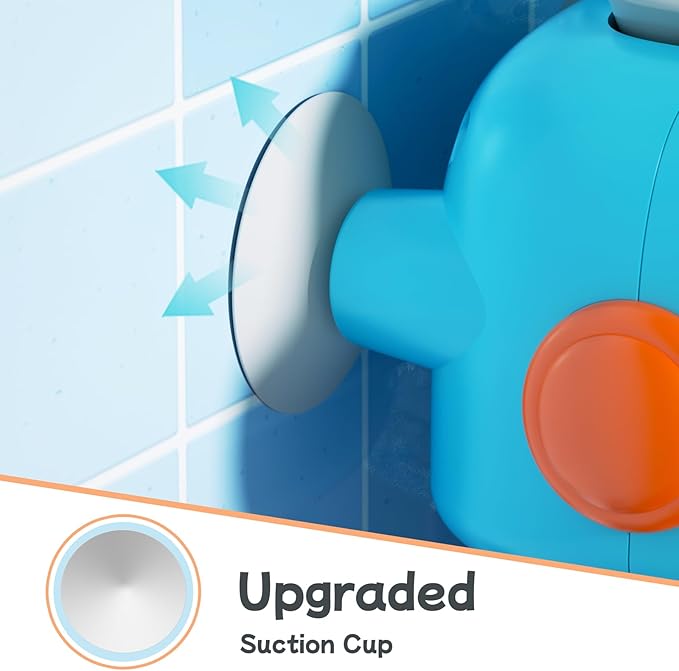 - UPGRADED SUCTION CUP: Our bath toys attach securely to wet surfaces such as bathroom tile walls, bathtubs, glass, etc. for easy cleaning
