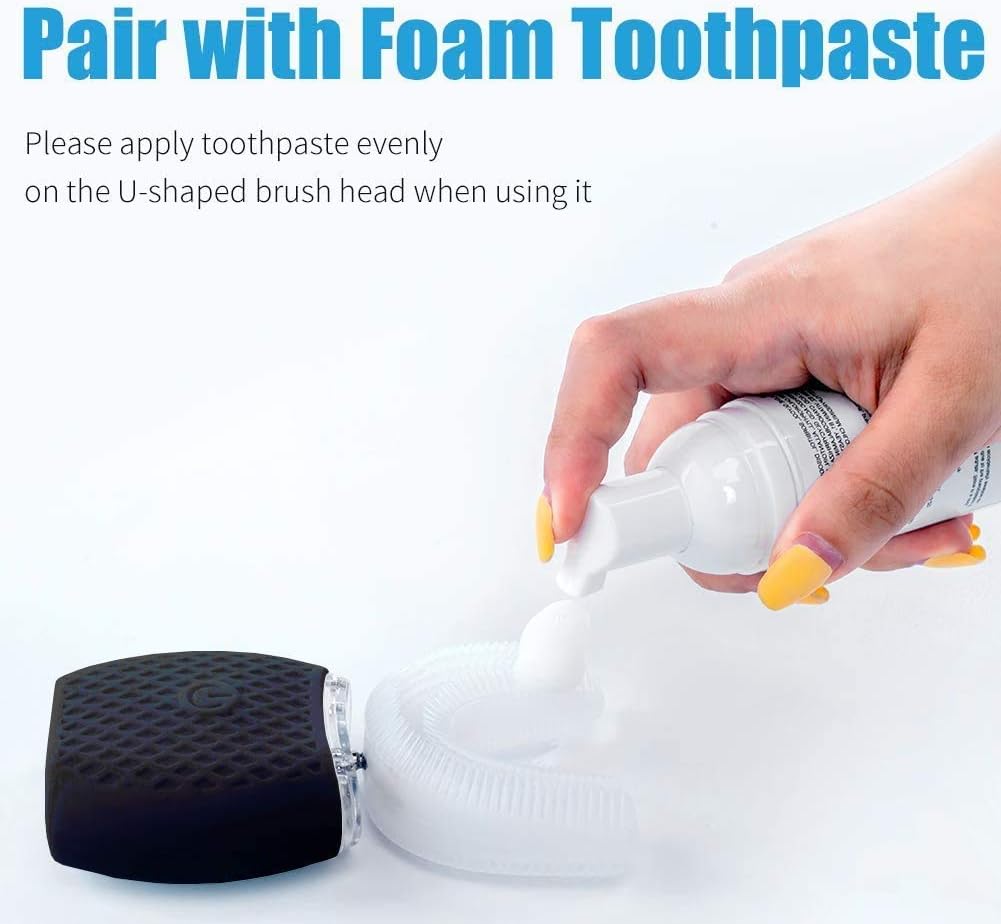 Maybuy Ultrasonic Automatic Toothbrush, Ultrasonic U-Shaped Toothbrushes for Adult, 360° Electric Sonic Tooth Brush with Automatic Timer, Wireless Charging Teethbrush Kit for Travel Or Home (Black)