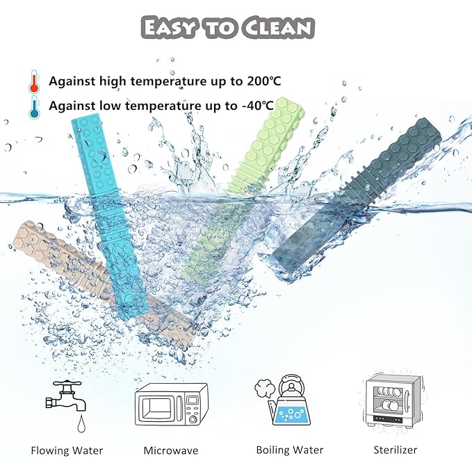 - -Easy to Clean -As a daily toddler chew toy sensory, easy to clean is a must. Parents just need to clean our teething stick with mild soap water or throw in the dishwasher. Upon receiving, we suggest a through cleaning for the initial use and after each use.