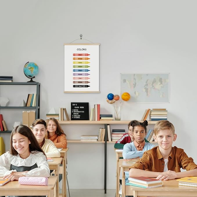 YOUHONG Educational Art Classroom Decor Color Poster - 12x15.7 Inch Kids Wall Art with Wooden Rods - Preschool Classroom Decor Learning Educational Posters for Toddlers (Easy Hang Rope Included)