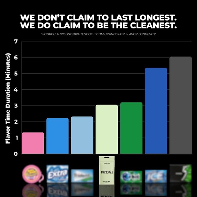 - LONG LASTING FLAVOR WITH NO ARTIFICIAL SWEETENERS: Refresh Gum provides a long-lasting burst of flavor using natural sweeteners like Xylitol and Stevia. Unlike conventional gum, it contains no sugar, preservatives, or artificial additives, delivering a clean, fresh and fruity taste.