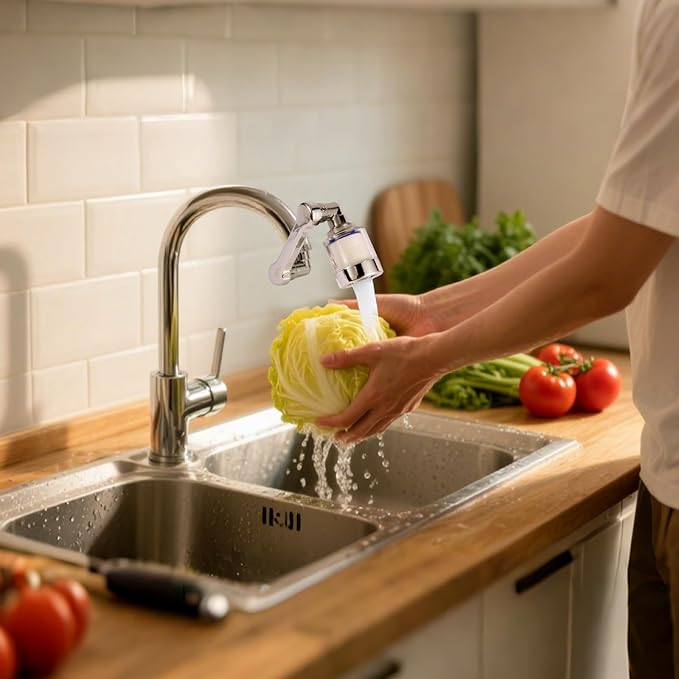 - 💦 2-Mode Outlet: The faucet extender offers two versatile modes: Soft Bubble Stream and Powerful Rinse Spray. By simply switching the nozzle section, you can instantly switch to the strong flushing mode, which effectively washes dishes and removes stains with high water pressure. The Soft Bubble Stream mode generates a gentle, oxygen-enriched foam and a non-splashing water stream, making it perfect for washing eyes, hands, and faces. Ideal for enhancing your sink faucet functionality!