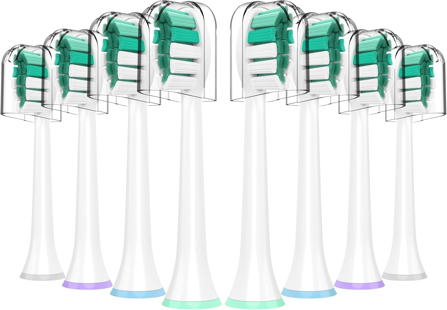 - EXCEPTIONAL CLEANING POWER – Unleash Your Brightest Smile! Our replacement brush heads for Philips Sonicare feature high-density bristles that effectively eliminate up to 10X more plaque, ensuring a deeper clean. The specially designed long-tip bristles reach even the toughest spots, helping prevent gum irritation and promote healthier gums. Coupled with powerful vibration pulses, it removes stubborn plaque, giving you a cleaner, fresher, and more radiant smile every day!