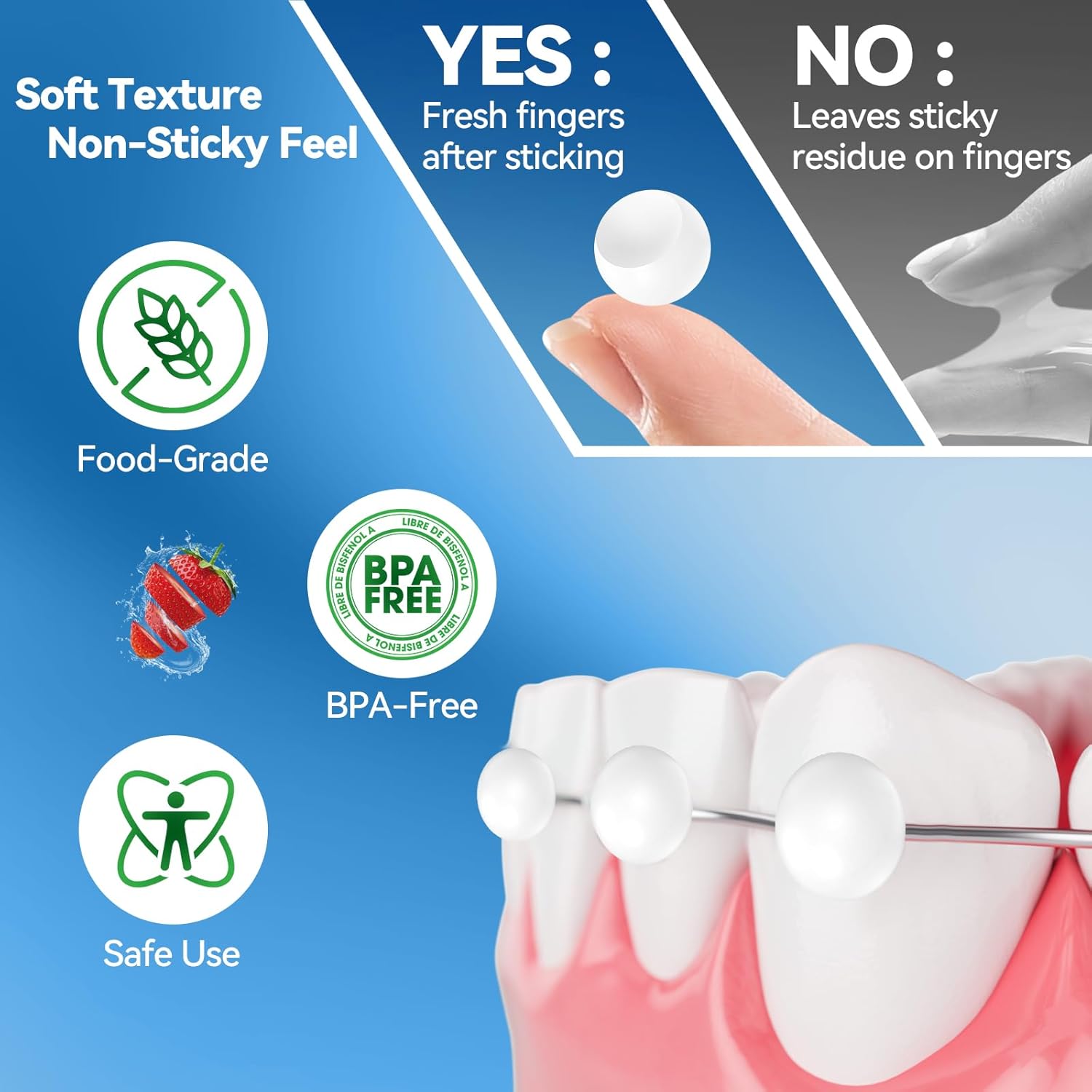 - Hemispherical Design:We innovatively adopt a hemispherical shape that fits perfectly with the curvature of braces. The braces wax quantity is scientifically measured, eliminating the need for cutting or tools. Even beginners can precisely position it with a simple "pinch and press," making it extremely easy to use