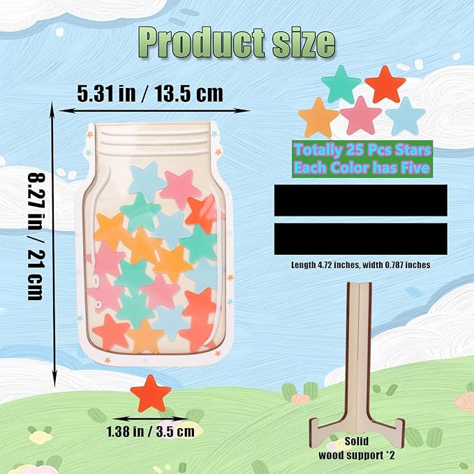 - π Safe & Kid-Friendly Design β The 25 included colorful plastic Stars are smooth and rounded β no sharp edges! The Reward Jar Mouth is Long and Smooth, making it easy (and fun!) for small hands to drop stars in or pour them out. No finger-pinching, no mess!