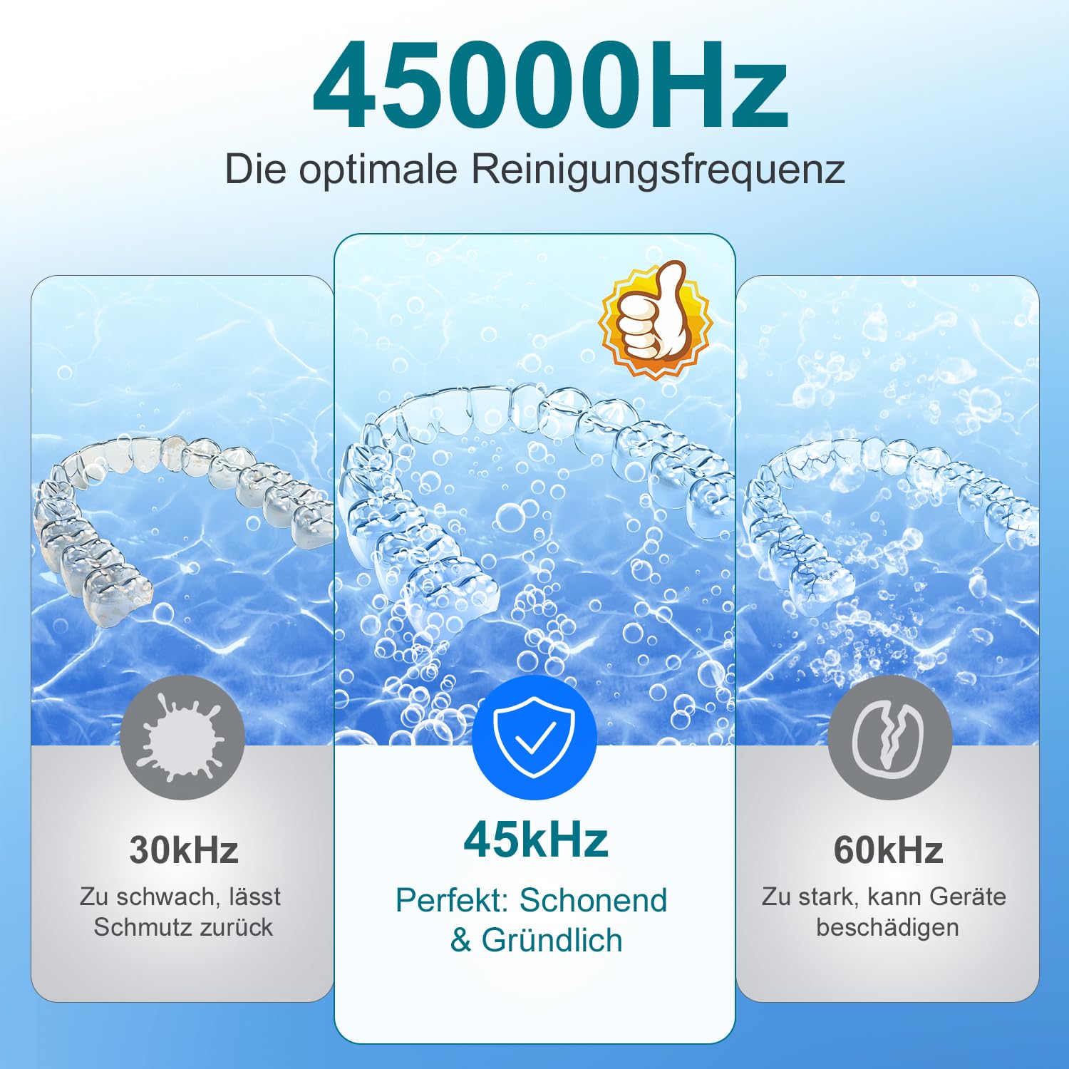 - 👥【Trusted by Aligner Users】: Ultrasonic retainer cleaner delivers a powerful yet gentle 360° clean using 45kHz waves and 25W power. Over 95% of aligner users find it highly effective and safe for all dental retainers
