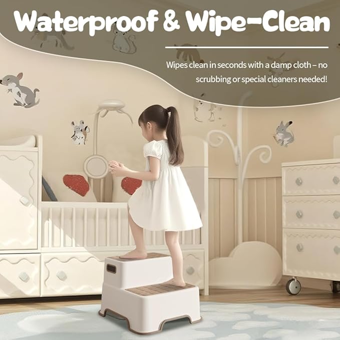 - Lightweight and Waterproof: Empower your little! Crafted from lightweight and durable PP plastic, this stool is easy for toddlers to carry themselves (weighs only 1.43 lbs). Plus, it’s fully waterproof, making it the perfect, worry-free companion for splash-filled bath time. Easy to clean -Just rinse clean in seconds and wipe dry.