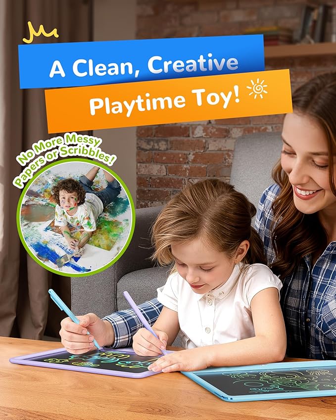 - EYE PROTECTION LCD WRITING TABLET: Adopts 2022 LCD pressure-sensitive technology and 12-inch LCD colorful screen. This doodle board toys without radiation, no glare, safe and comfortable even use for a long time.