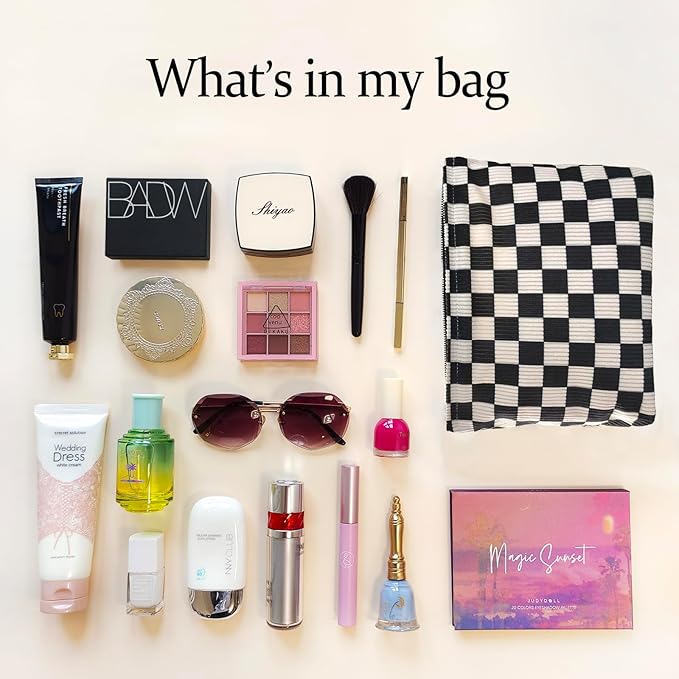 - Exquisite Fabric: Made from a soft yet durable corduroy fabric with sturdy canvas lining, this make-up bag combines comfort and longevity. The stylish checkerboard pattern adds a touch of elegance to your everyday routine