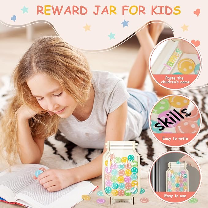 - 【Unique Reward Jar】:This reward jar sparks kids’ imagination with a playful star Jar reward system. Kids adore its whimsical design, turning routine rewards into celebrations they’ll beg for. Watch their eyes light up as they proudly fill, shake, and showcase their achievements—behavior goals have never been this fun.