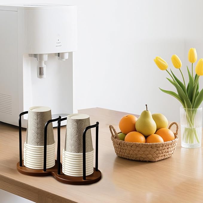 - Elegant Walnut Wood & Golden Aluminum Pillar Design-Crafted with a premium walnut wood base and gold-coated aluminum pillars, this cup dispenser combines durability with a luxurious aesthetic. Its sleek design complements modern kitchens, offices, or cafes, adding a touch of sophistication to any space.
