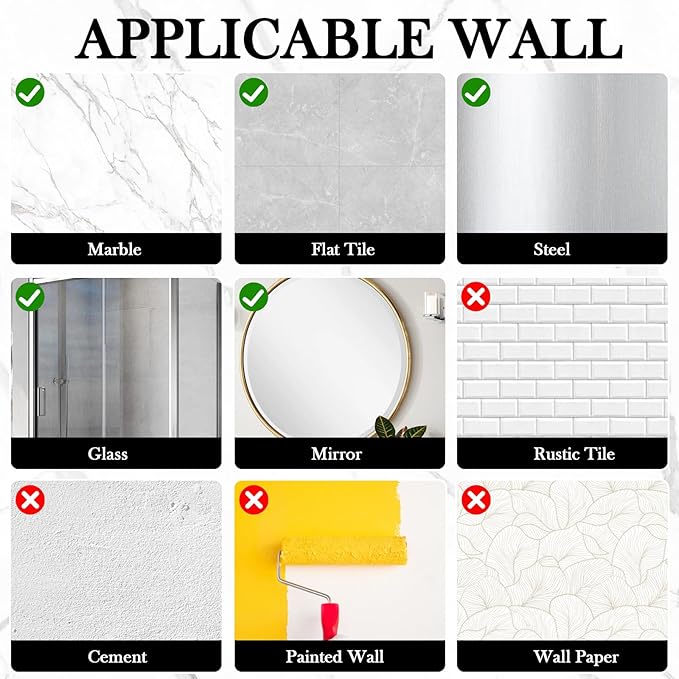 - [Warm Tips] :This bathtub toy storage basket works best on smooth, flat, non-porous surfaces such as metal, glass, tile, stainless steel, and acrylic. Avoid uneven tiles, textured boards, unfinished stone, wallpaper, or painted walls. Before first use, rinse the suction cups, dry them, and test on a smooth glass surface for the best hold.