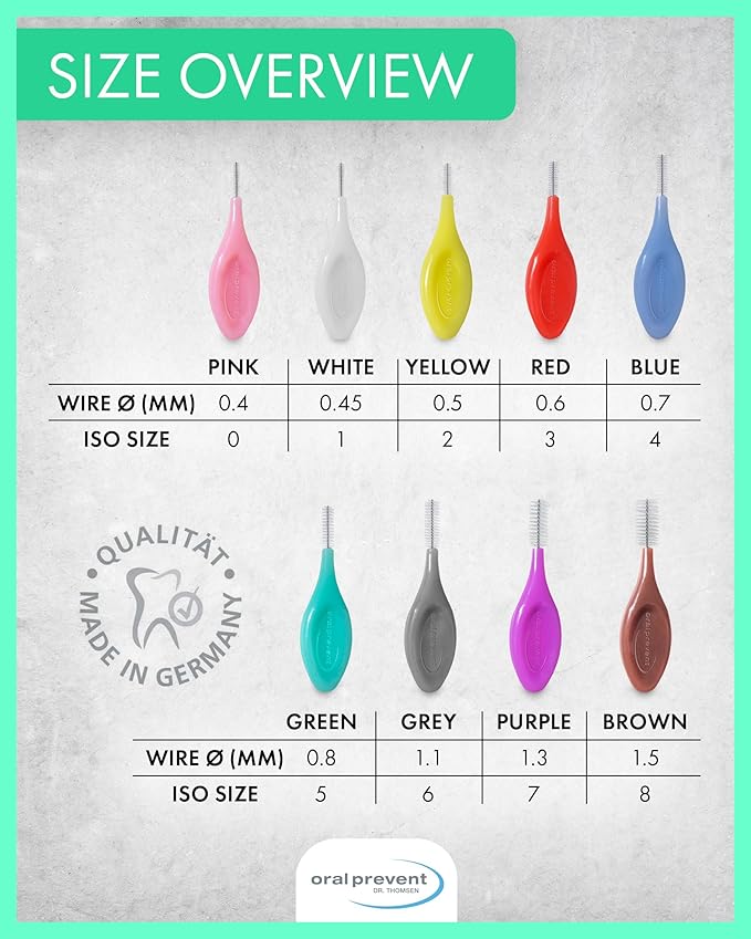 - ✅ ULTRA-FINE CLEANING FOR TIGHT SPACES – Designed with a 1.50 mm brush size (ISO 8), these interdental brushes slide easily between even the narrowest teeth for deep plaque removal and optimal oral hygiene.