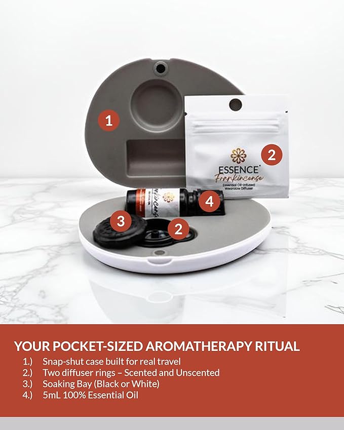 Essence Pearl Travel Case - Wearable Aromatherapy Kit with Nasal Diffuser Rings, Soaking Bay, and 5mL Essential Oil – Portable Wellness Gift Set for On?The?Go Self Care
