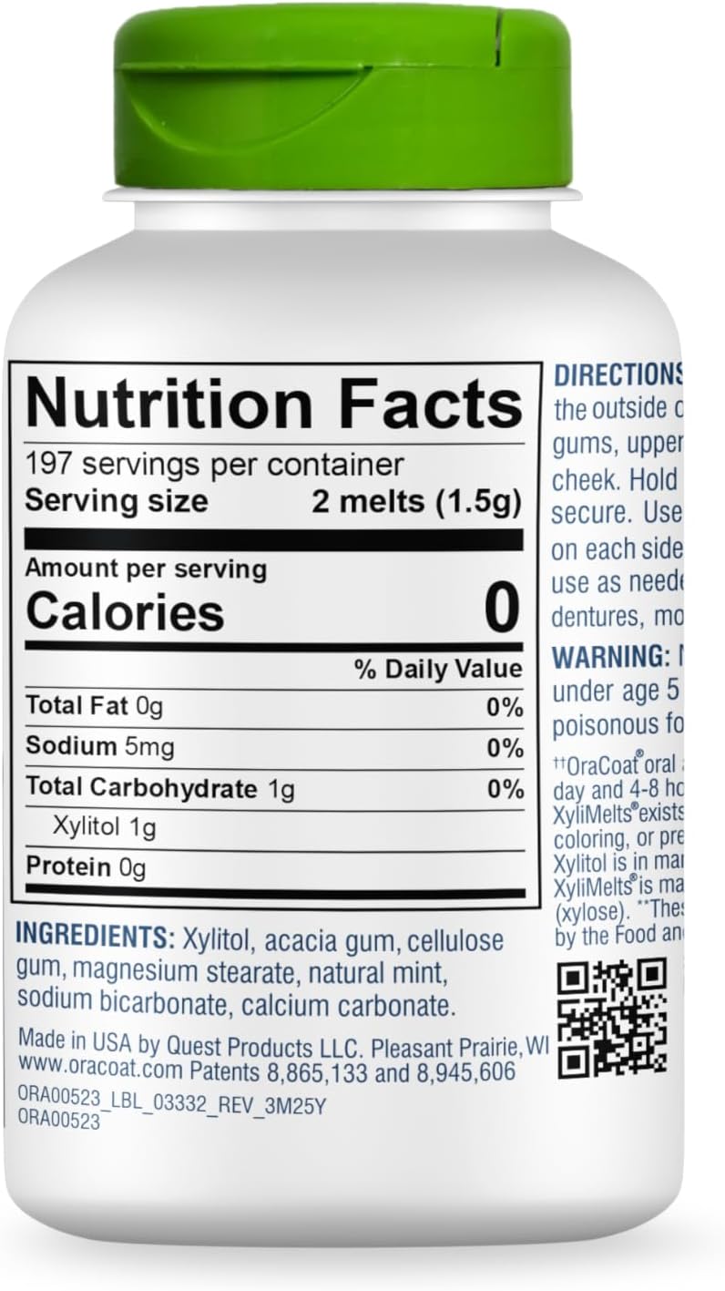 - LONG-LASTING RELIEF: Experience up to 8 hours of dry mouth care with OraCoat XyliMelts. These discs attach to gums or teeth, helping as saliva substitute dry mouth gum care