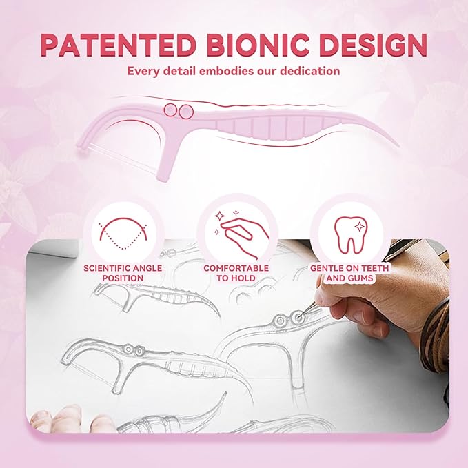 - 【ERGONOMIC DESIGN】Our dental floss boasts a biomimetic design that harmoniously aligns with the natural contours of your hand, offering unparalleled ergonomic comfort. Crafted for durability, it resists breaking while being gentle on your teeth and gums