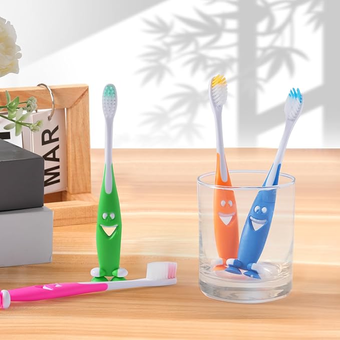 - High-quality materials: The children's manual toothbrushes are made of sturdy rubber material with a fun suction cup design, which is durable for long-term use, convenient to hold, and anti-slip; making it easier for children to brush their teeth.