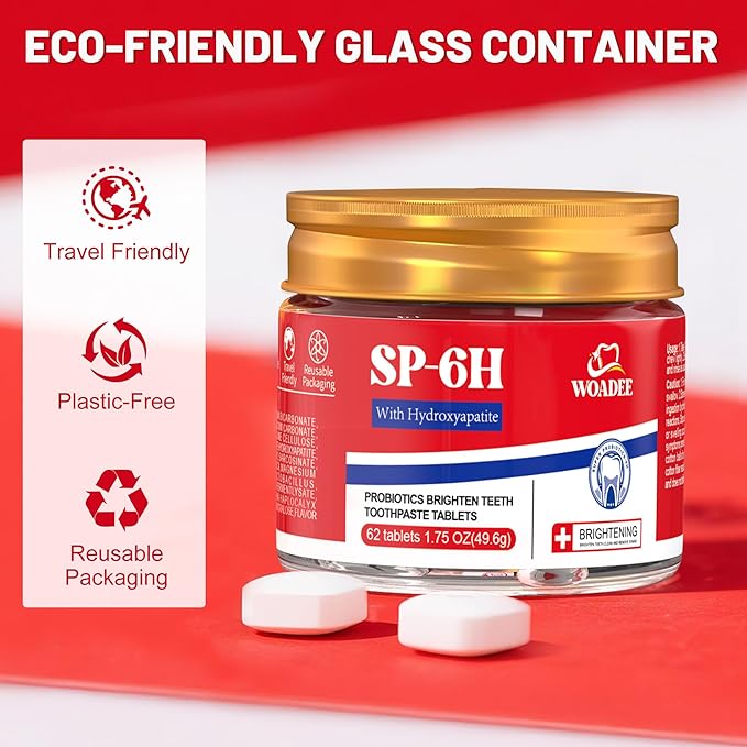 SP-6 Probiotics & Hydroxyapatite Toothpaste Tablets - Remineralizing Enamel Repair, Fluoride-Free Whitening, Mint Fresh Travel Tabs (62 Count)