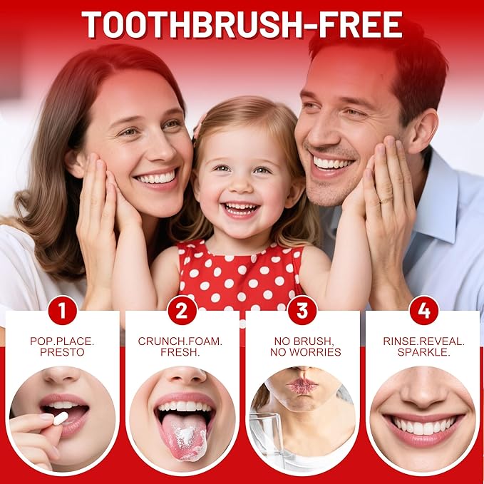 - 【SIMPLE USE - CHEW&RINSE】CHEWABLE TOOTHPASTE TABLETS-Enjoy clean, effective oral care without the waste or hassle. Just pop a chewable toothpaste tablet, chew and simply rinse your mouth(or brush as usual with a wet toothbrushand rinse). Pefect ideal for home, office,gym, or travel.