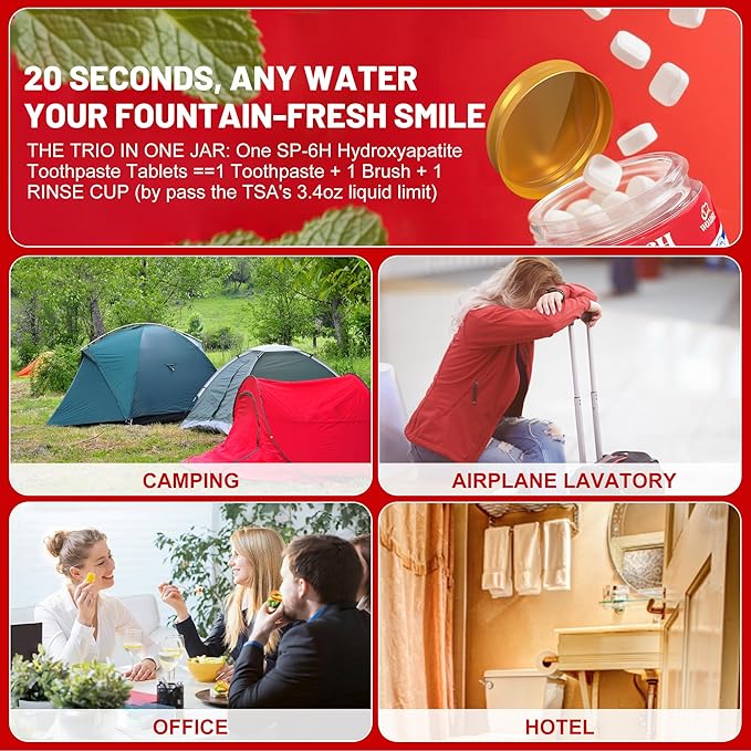 - 【PERFECT TRAVEL SIZE -PLASTIC-FREE】Ditch the liquid limits and plastic waste! These compact fluoride-free toothpaste tablets come in a sleek, recyclable glass jar, complying with TSA 3.4oz regulations for hygienic, eco-conscious travel anywhere