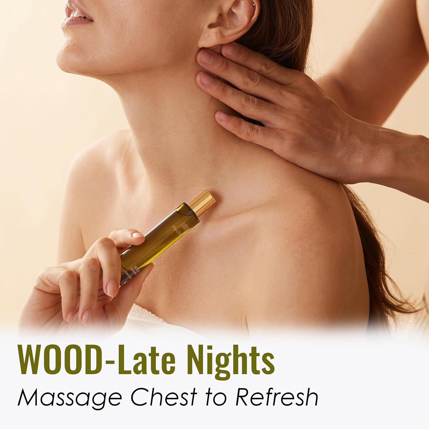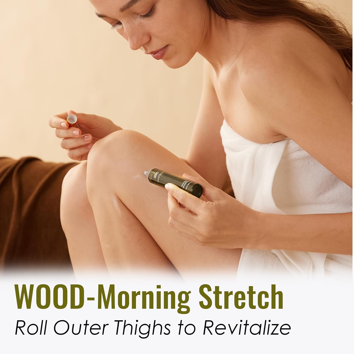 - DAILY RELIEF RITUALS – INSPIRED BY NATURE: WOOD–Stressful Moments: Roll on lymph and shoulders to release stress and tension; WOOD–Morning Stretch: Apply to outer thighs to revitalize energy and promote detox; WOOD–Late Nights: Massage chest to refresh and unwind.Ideal for those using calming oils for anxiety relief, or for balance and rest