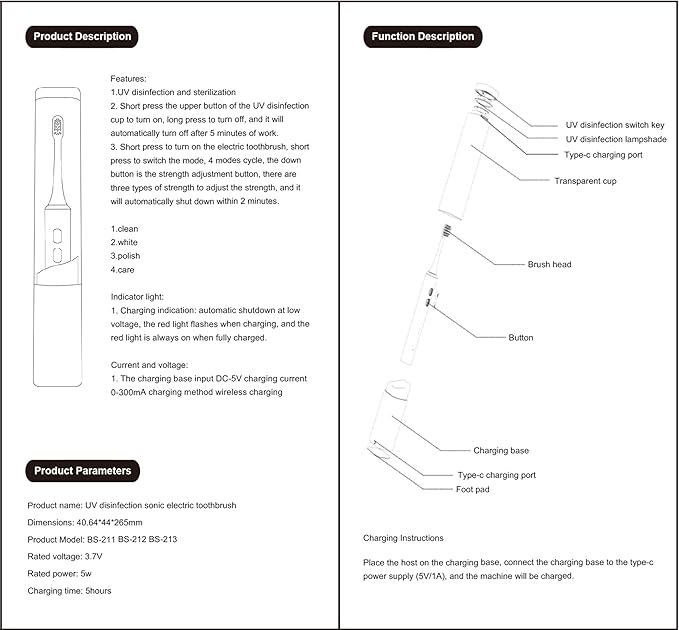 - 【Triple-in-One Smart Design】Disinfection/Brushing/Storage in One Transparent cup body integrates UV sterilization, portable brushing, and travel storage functions, space-saving; food-grade material, safe and odor-free.Meets family travel needs.