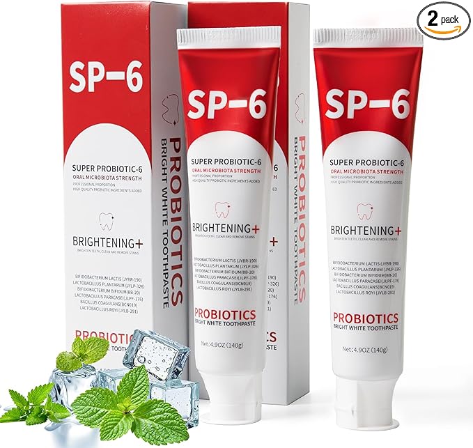 - 【Long-Lasting Fresh Breath & Gum Support】The SP-6 Probiotic Whitening Toothpaste will balance your oral microbime. The probiotics combat bad breath at the source, reduce plaque and promote gum health. The natural mint flavor will keep breath fresh for hours.