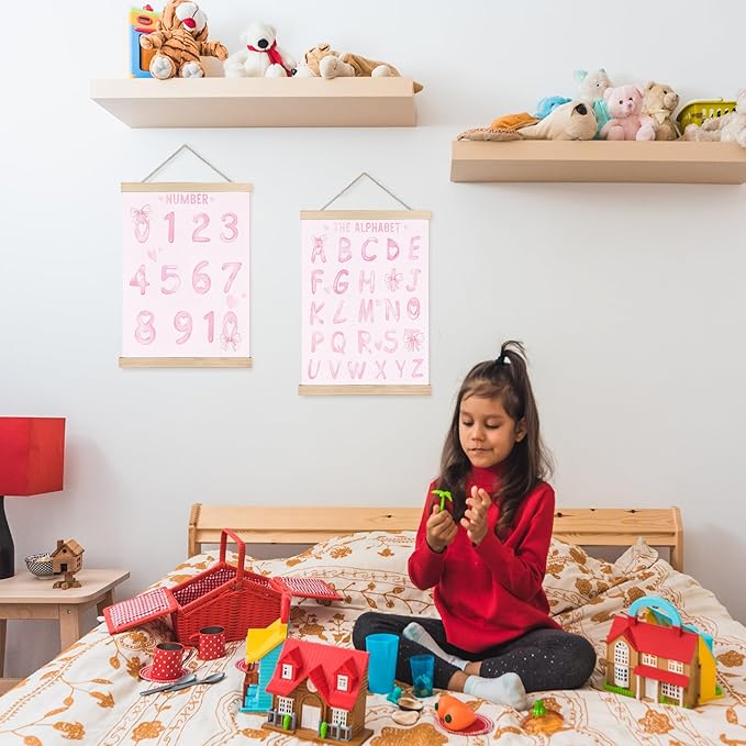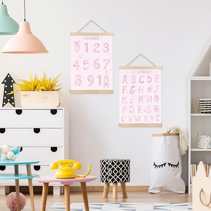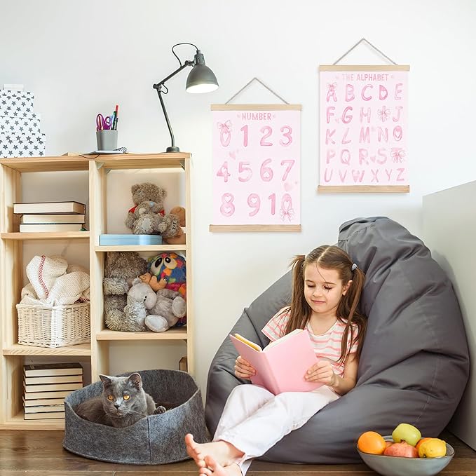 Pink Numbers 0-10 Alphabet Baby Learning Poster Wall Art Decor, Girl Nursery Decor, Coquette Pink Bow Learning Wall Decor Posters for Toddler Baby Girls Kids Room Playroom Homeschool, 12x16 Inch Set of 2
