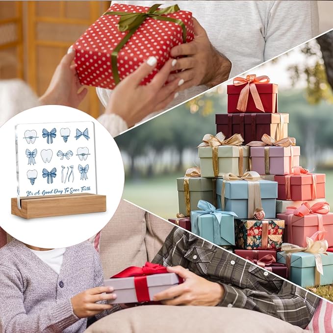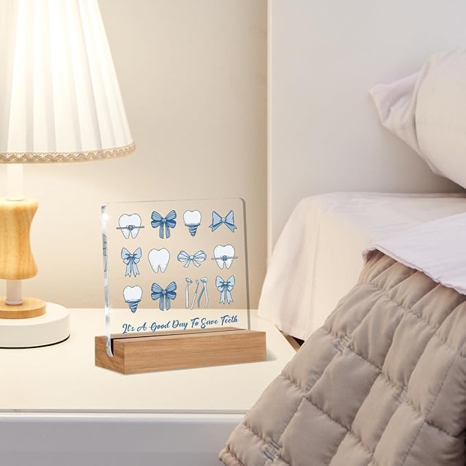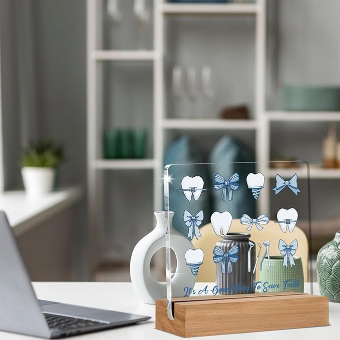 Dental Hygienist Gifts, Dentist Gift for Women, Dental Assistant Accessories Acrylic Plaque Gifts, Blue Bow Coquette Dentist Office Desk Decor