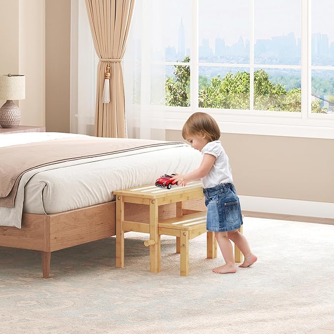 - Non-Slip Design for Maximum Stability: The 2-in-1 kid's step stool features anti-slip grooved steps and grippy textures on the legs that help prevent slipping and sliding, keeping the stool firmly in place on tile, wood, or laminate floors for secure use