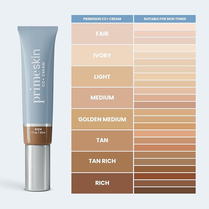 Prime Prometics PrimeSkin CC+ Cream for Mature Women – Lightweight Liquid-to-Powder Foundation – Blurs Pores & Covers Age Spots – Crease-Free, Hydrating & Soft-Matte Finish for Sensitive Skin (Rich)