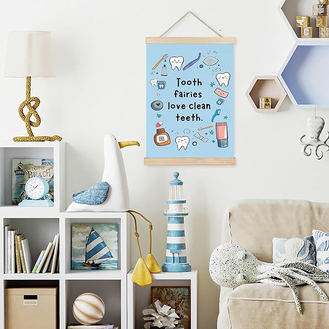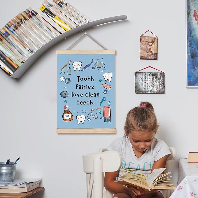 FDHSPAAM Funny Dental Wall Art Decor, Dental Office Decor, Dentist Gifts, Tooth Fairies Love Clean Teeth Cute Oral Hygiene Wall Art Posters for Hospital Doctor Office, 12x16 Inch