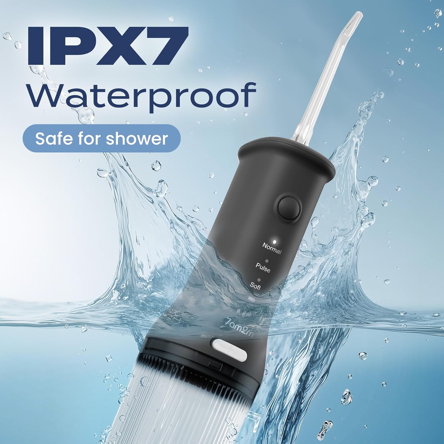 7AM2M Portable Water Flosser Cordless, Water Flosser with 3 Modes and 2 Jet Tips, USB C Rechargeable, IPX7 Waterproof, Dental Water Flosser for Travel and Home Use (Black)