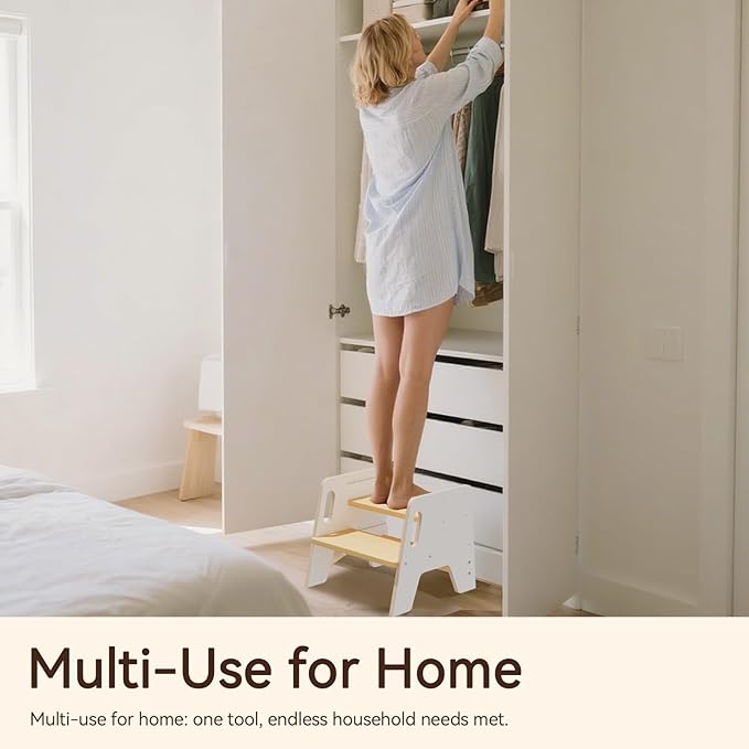 - Multi-Use Stepstool :300lb weight capacity wooden step stool isn't just for toddlers but also safely holds adult. Perfect for helping kids reach sinks while sturdy enough for parents to grab top-shelf items. One stool, endless uses for the whole family