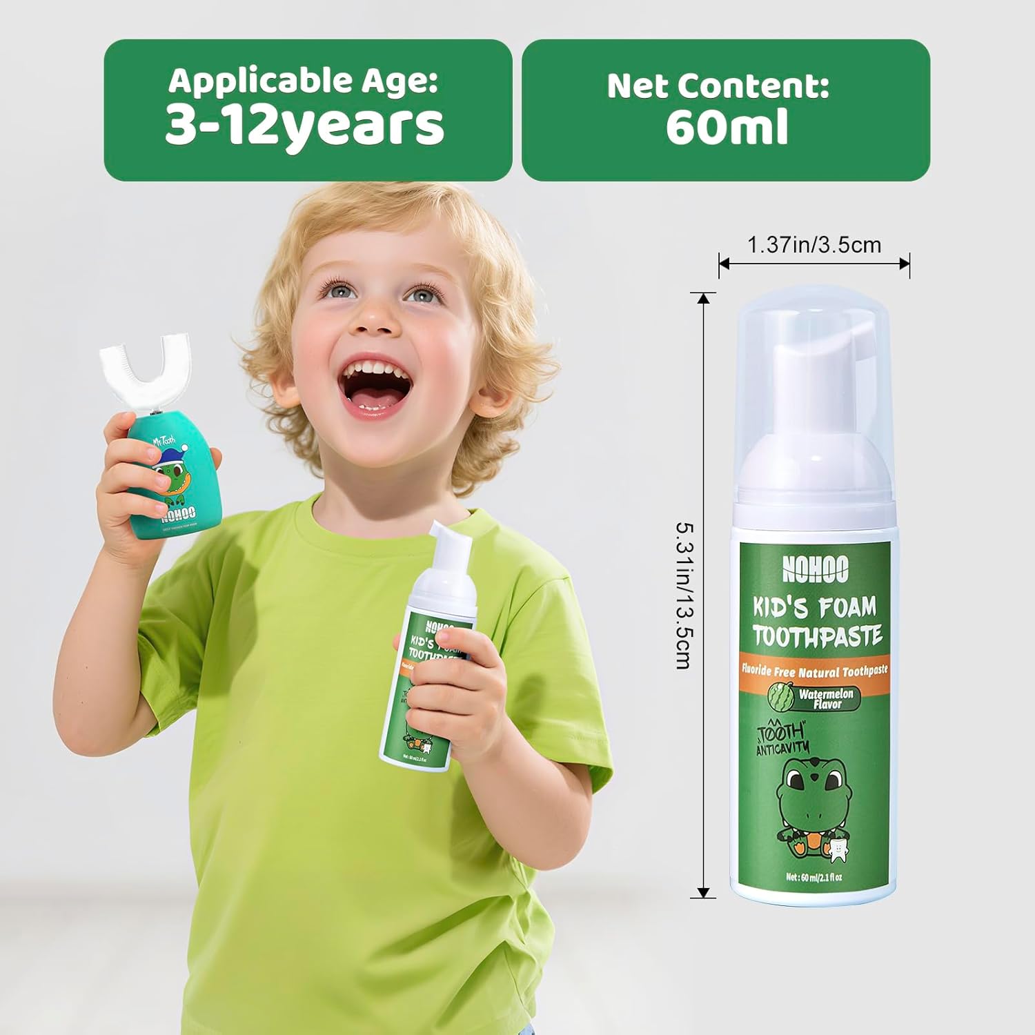 NOHOO Fluoride Free Foam Toothpaste Kids Watermelon,Natural Training Toothpaste for Baby Toddler Children Oral Cleaning and Cavity Protection(2 Pack)