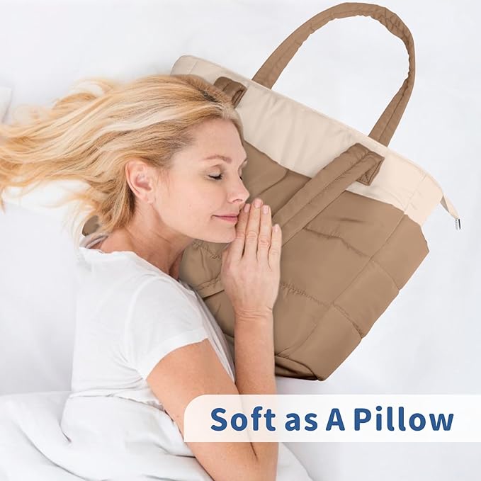 TOPDesign Puffer Tote Bag for Women, Lightweight Puffy Handbag with Compartments, Quilted Shoulder Bag for Work, Travel, Gym