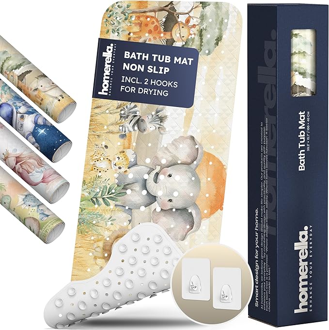 - OUR NO-MOLD FORMULA FOR YOU: Trashing your bathmat every 6 months? Not anymore! Drainage holes + hooks for drying + regular wash = zero mold buildup. Our kids bath mat is machine washable (cold/delicate). Made to last.